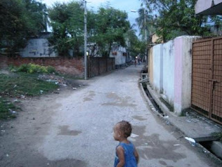 On the way Ellie persuaded her daddy to buy her these blue shoes. Notice one shoe lost its eye on the rickshaw ride home.